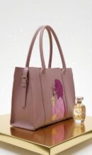 Celebrate grace and individuality with the Ethanfpurse Dusty Rose Floral Hijab Illustration Tote. This standout piece features a beautifully detailed illustration of a woman in a vibrant purple hijab holding a bouquet, set against a soft, sophisticated dusty rose background.