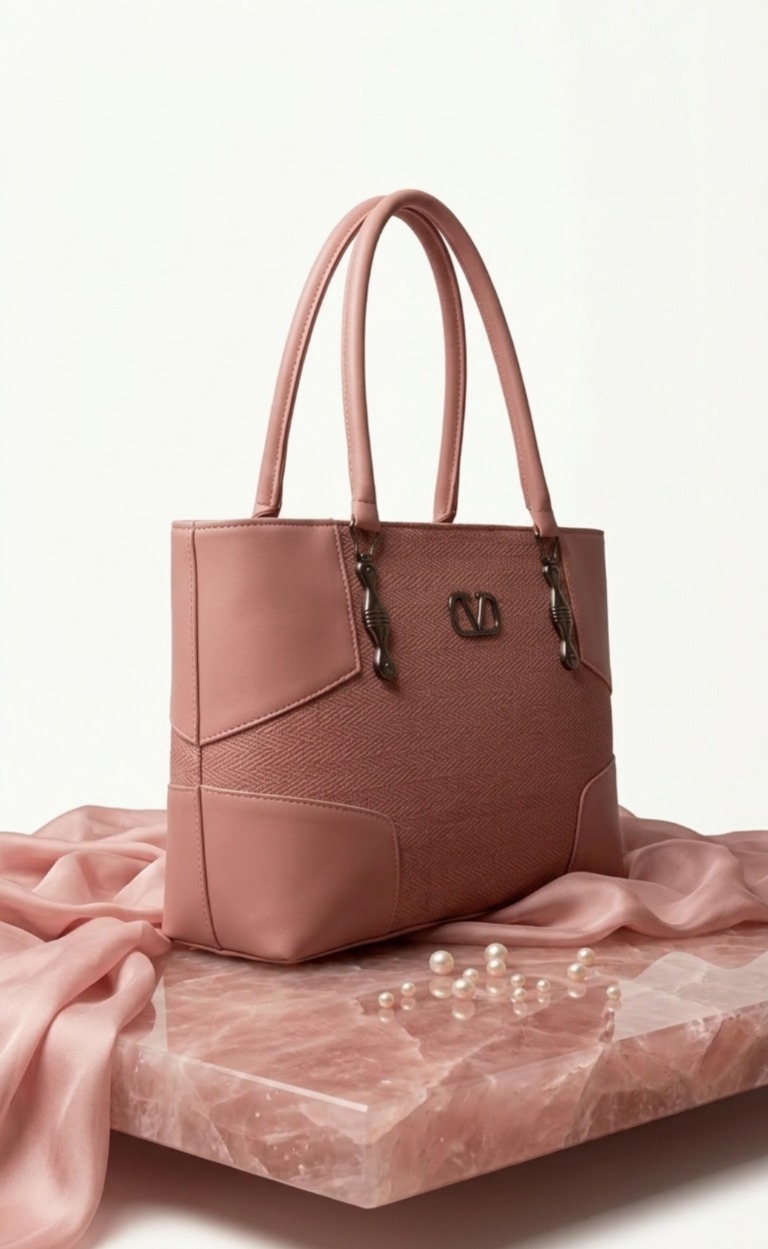 Immerse yourself in a palette of power and poise with this Rose Blush silhouette. This piece utilizes a high-contrast architectural design, blending smooth, vibrant vegan leather with a textured, chevron-woven center panel. The result is a multi-dimensional aesthetic that captures and diffuses light, offering a modern, sleek take on traditional feminine tones for the high-end professional.