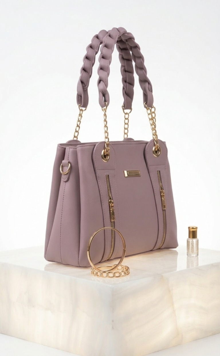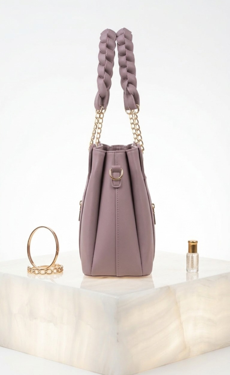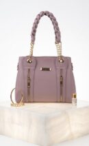 Command the room with an accessory that balances structural precision with avant-garde texture. This shoulder bag is rendered in a vibrant, sophisticated mauve that provides a high-contrast foundation for its standout feature: a thick, sculptural braided handle. The interplay between the soft, muted tone of the body and the intricate, light-catching weave of the strap creates a sleek, high-end aesthetic perfect for the modern executive.